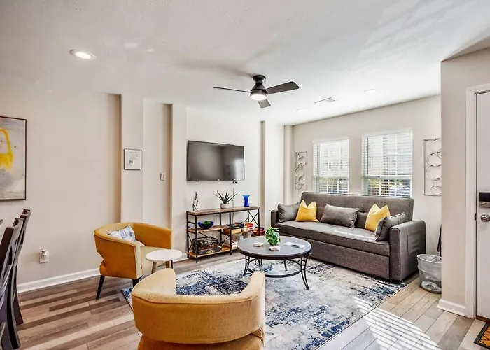Esta villa de 130 m^2, The Downtown Winter Retreat @ Historic 1St Ward Villa, está situada a 2 km del centro de Houston, aproximadamente a 15 minutos andando del Distrito de los Teatros de Houston. Las habitaciones de la villa cuentan con un balcón, una zona de comedor y un sofá, lo que hará que su estancia sea confortable.